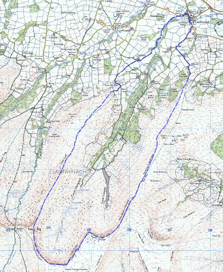 Anti-clockwise route: there is a cut-off time of 75 minutes at the summit of Fan y Big - competitors not making this cut-off will be retired from the race and will return to the start by the same route.